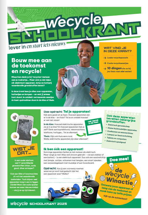 Ruim 4.500 basisscholen hebben voor groep 7 en 8 de Wecycle Schoolkrant 2025 ontvangen.